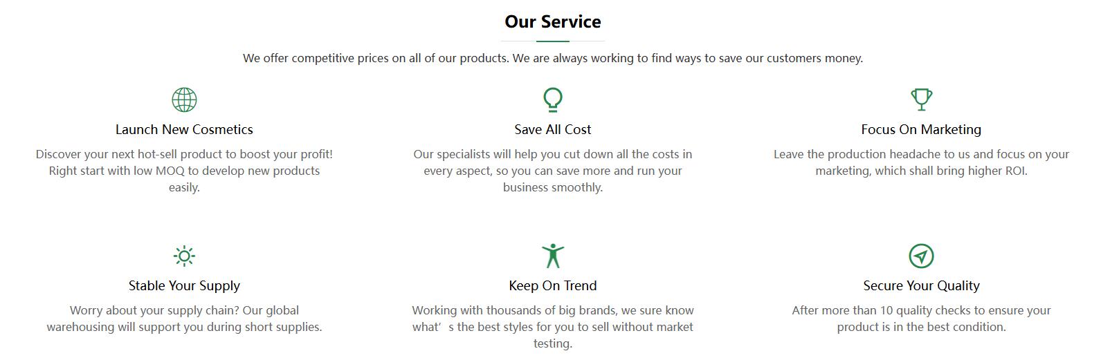 <p>Good looking pictures are very important to success in private label skincare product for DTC brands. That’s why we provide free professional product photography for you to start by our in-house photographer. These great pictures will make your personal care products look amazing in your ads, on social media, on your online shop, and even on posters in front of your store. This will help get customers interested and increase your sales.</p>