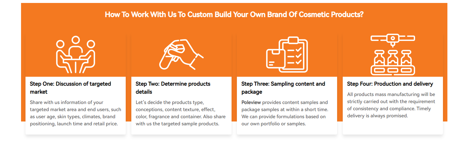 <p>Let’s decide the products type, conceptions, content texture, effect, color, fragrance and container. Also share with us the targeted sample products.</p>